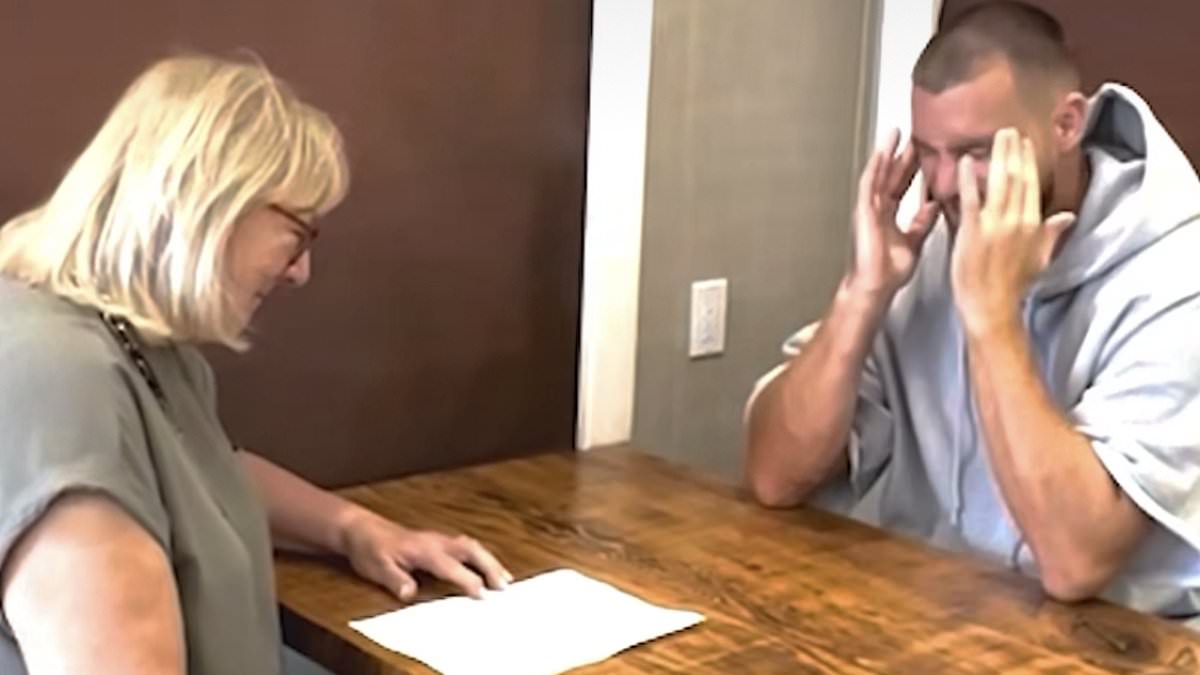 Kansas City Chiefs tight end Kelce is asked by Donna to help her with a crossword puzzle, to which he jokes that he struggles with spelling – an apparent reference to his old tweets, laden with spelling errors, going viral.