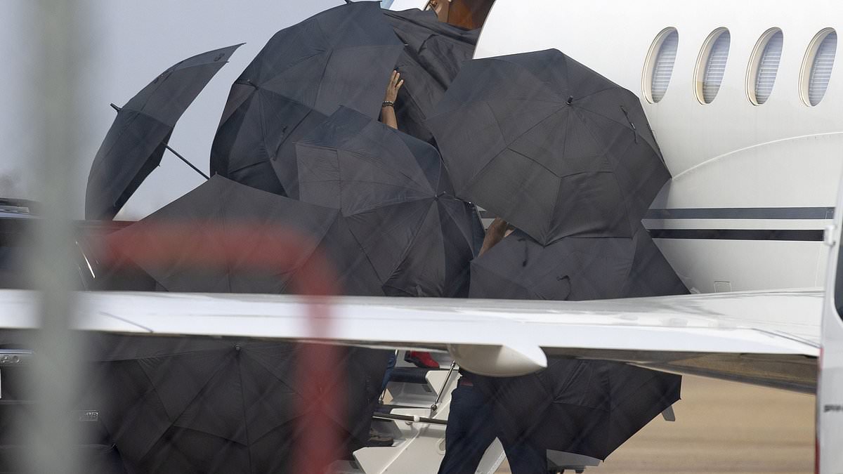 An army of umbrellas protects Taylor Swift as she boards her private jet in New Orleans